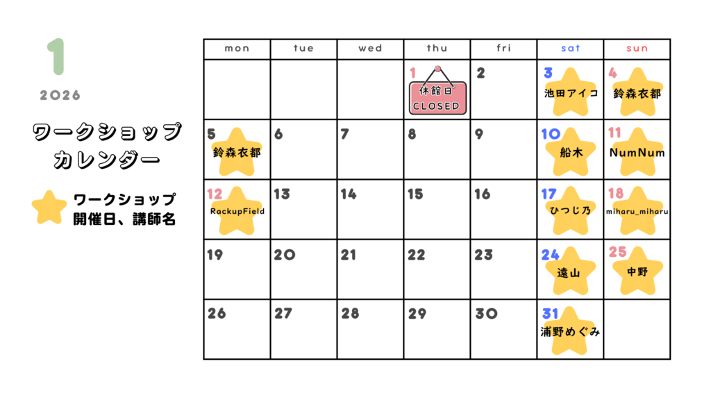 1月のワークショップ予定